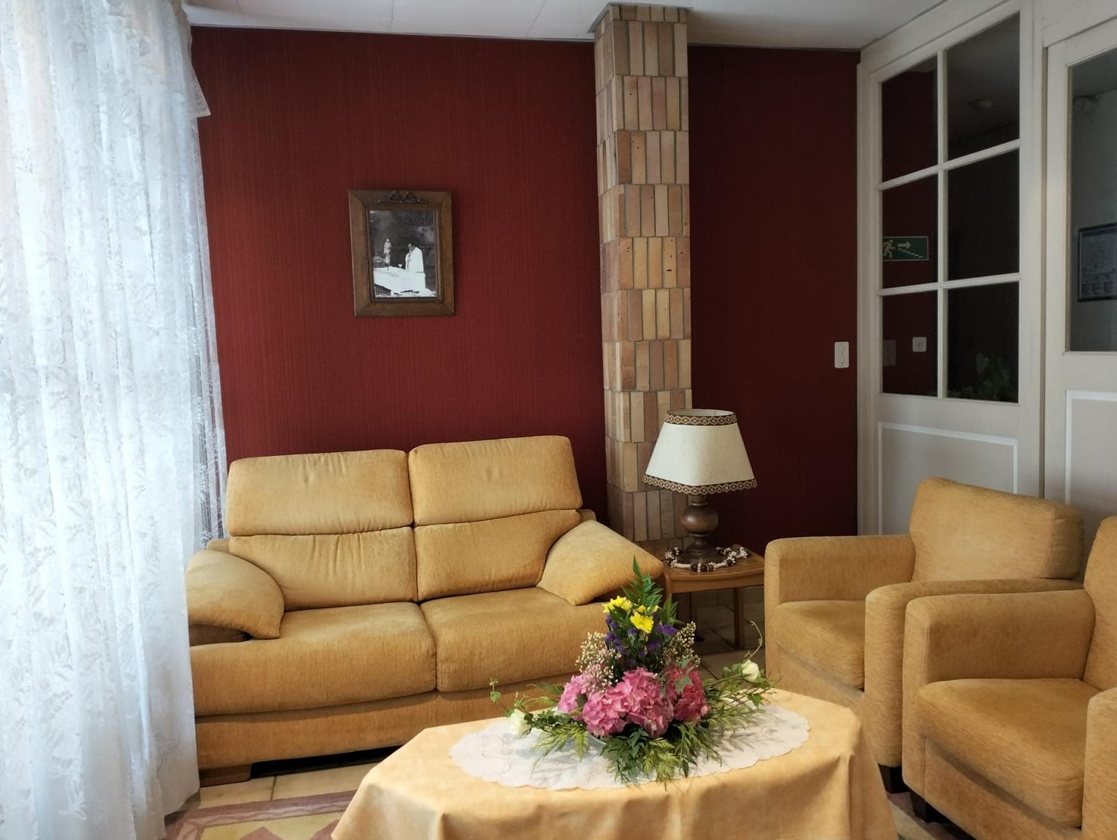 Patio intérieur, salle d'accueil et chapelle à la disposition de tous les hôtes.